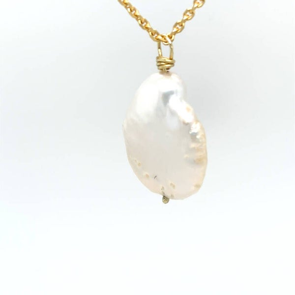 14 kt verguld gouden ketting met barokparel hanger 14kt