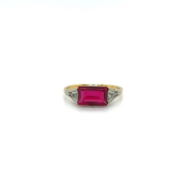 Ringetje met robijn En diamantjes wit en geel goud maat 16,5
